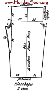 Выкройка шаровар дана на чертеже в уменьшенном виде, размеры надо уточнить по фигуре.