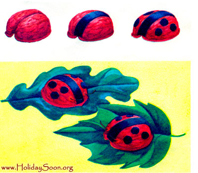 «Божья коровка» из ореховой скорлупы